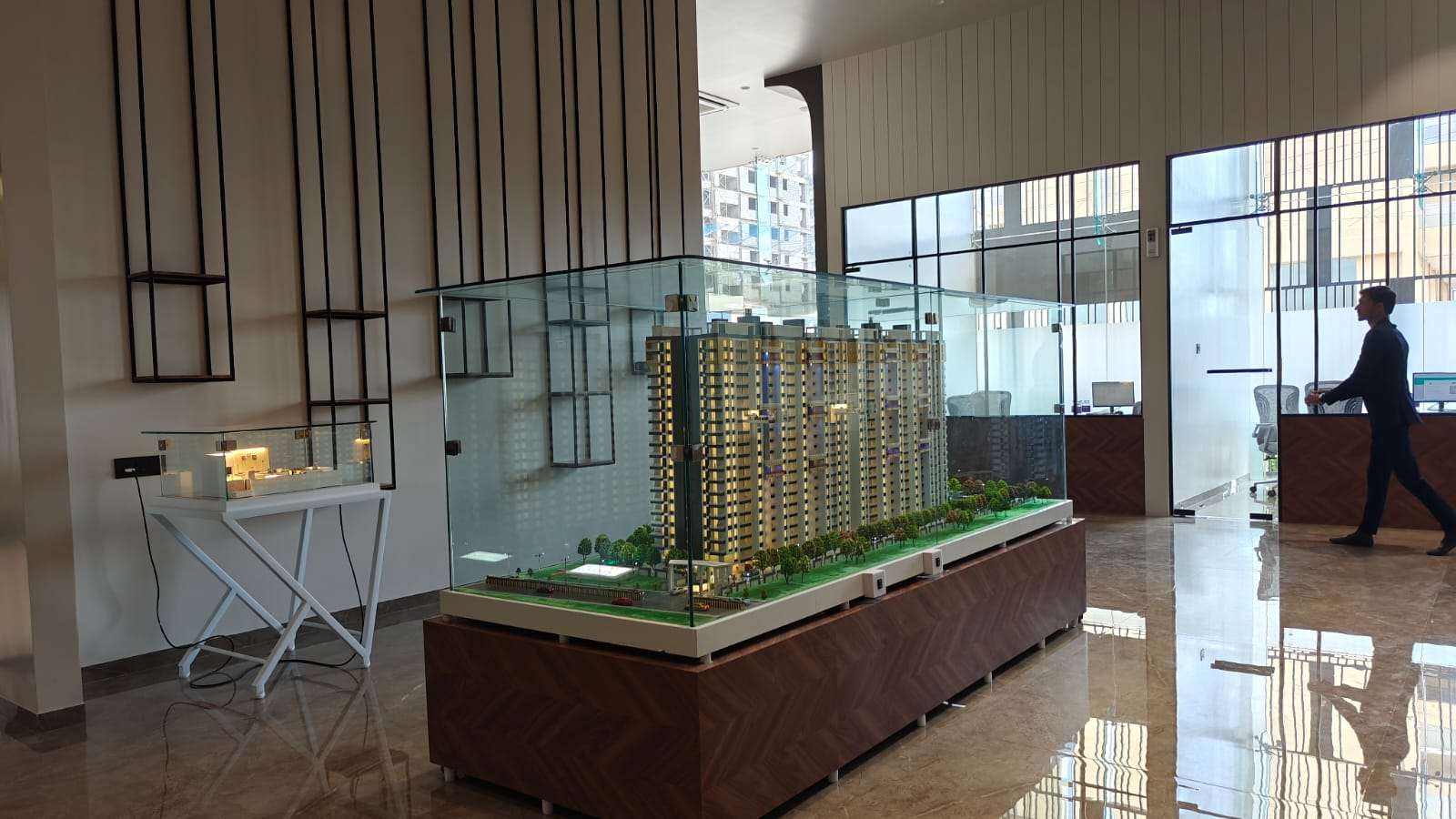 Bhagirath meticulously replicates every architectural element of Sky Park, from building façades and terraces to landscaped gardens and community areas. The scale model reflects proportions, spatial organization, and design nuances, providing a realistic and visually engaging representation. This attention to detail highlights both aesthetic appeal and functional planning in the residential complex.