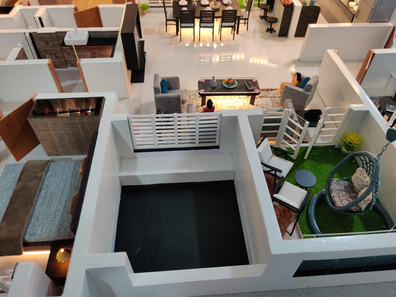 Bhagirath carefully replicates every architectural element of Suyog Shrivatsav, from building façades and terraces to landscaped gardens and communal areas. The scale model mirrors proportions, spatial organization, and intricate design features, providing a realistic and visually engaging representation. This attention to detail highlights both functional planning and aesthetic appeal.